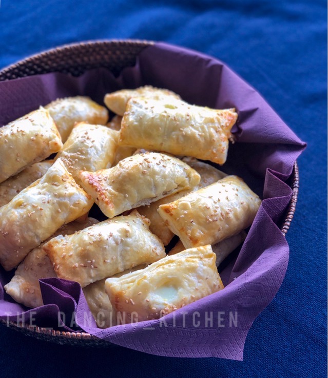 7.place the pastry on your baking pan, egg wash them using a pastry brush and sprinkle some sesame seeds over the pastries. Bake 15-20 minutes in 180’c. Until they are puffed are brown on top.
