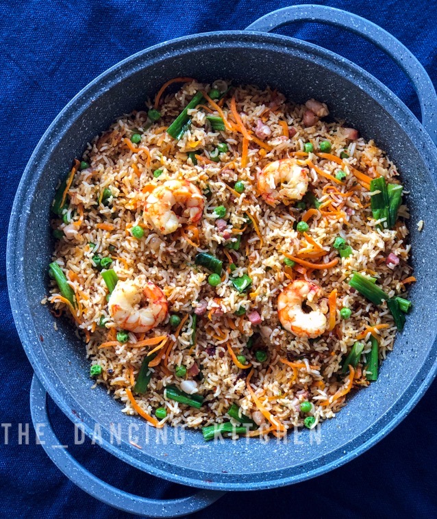 Some simple shrimp and smoked pancetta fried rice to fix the Sunday lunch. .