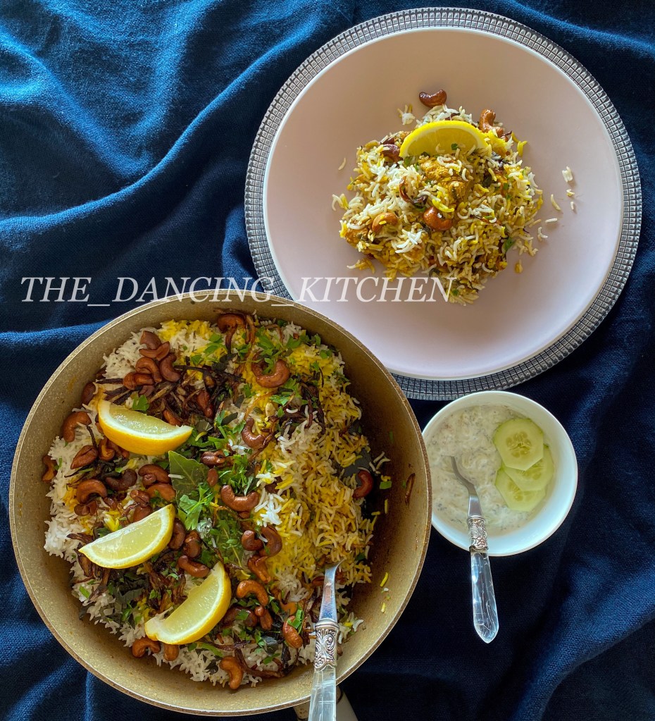 Who doesn’t love some chicken biriyani packed with loads of flavours? I’m a big fan of Indian food. And biriyani is top of among all. Most of the time when I don’t have time for fancy food for party table I do my one pot biriyani with whatever I have in the kitchen. But you know what’s the best, the most delicious one? Cooking with pre cooked rice, milk and saffron mix on top with loads of freshly chopped herbs and fried onion on top, fried cashews, raisins and melted ghee. This takes little more time than one pot biriyani but taste is amazing.