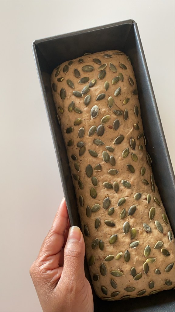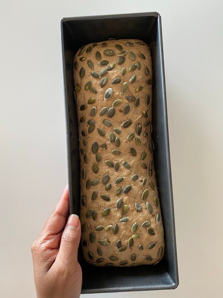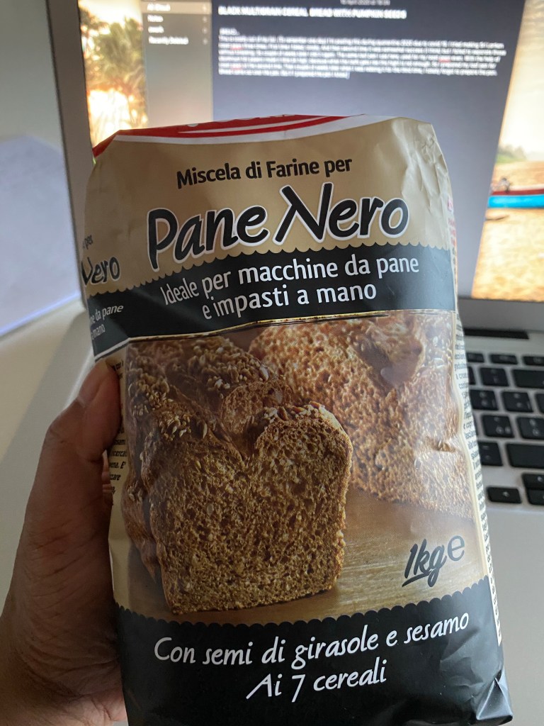 These types of bread probably you can see in north Italy. these black multigrain breads are very famous in north Italy. These breads are packed with grains, seeds and wholemeal flour. moist and one of the delicious bread that I’ve ever had. i sprinkled some dry pumpkin seeds on top, because I had some sunflower seeds sprinkled bread from one of the store nearby I live in north Italy. so as how I got some pumpkin seeds, used it for my bread. Then few days later when I was kneading my fourth bread I had some sesame seeds that I bought to sprinkle when I’m redoing bread again. So did pumpkin seeds and sesame seeds bread with with the same bread dough. Honestly this is the best bread that I’ve ever baked. And simply feel proud on myself. Self teaching is the best thing. this bread proved it to me. (Sorry for being emotional) I tried, failed, gave up and then I started again.