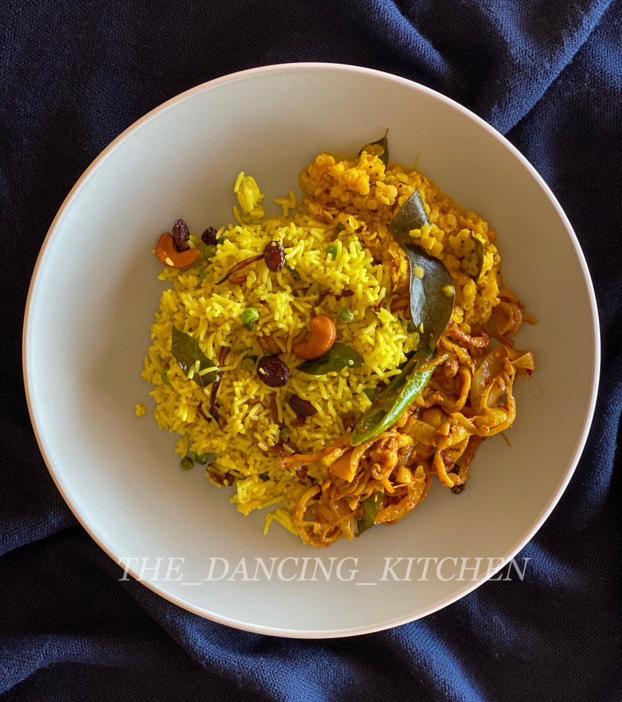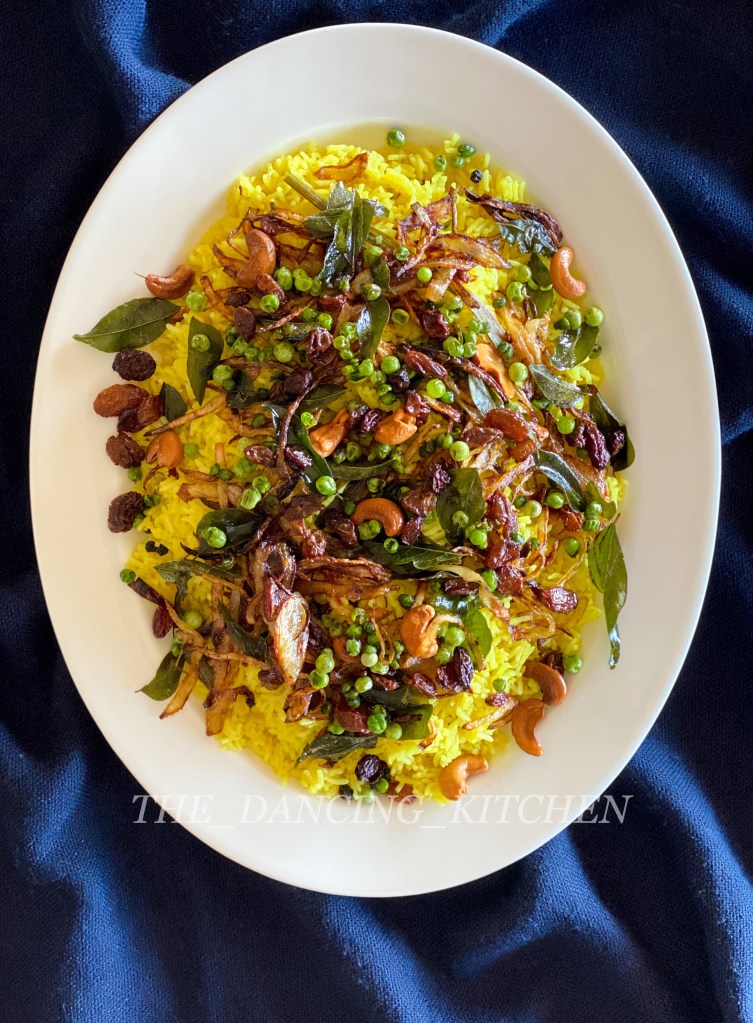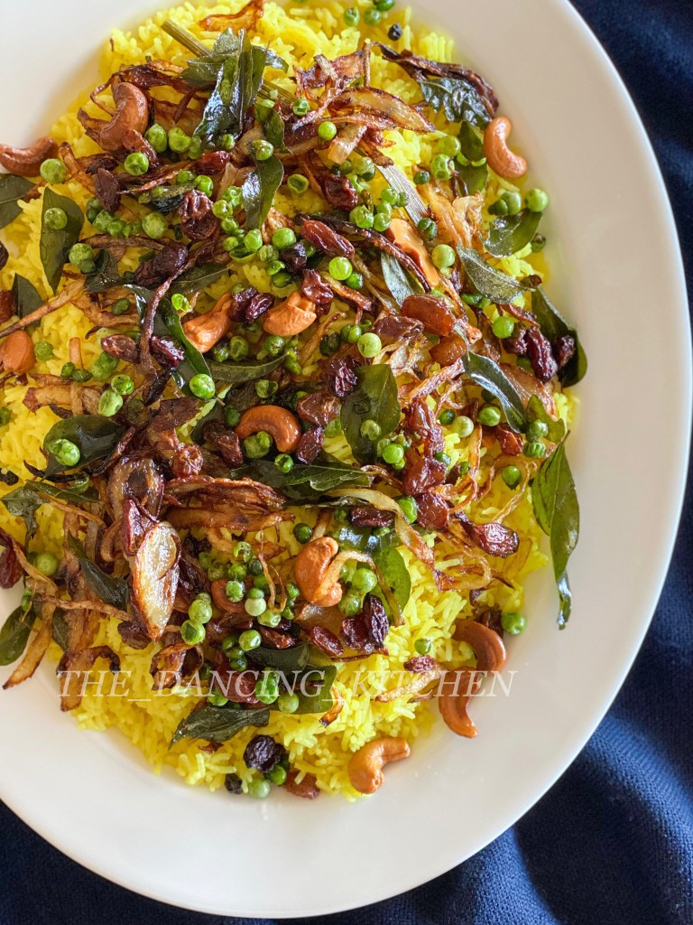 11.mix the cooked yellow rice with fried ingredients and serve with your favourite curries, salad, raita.