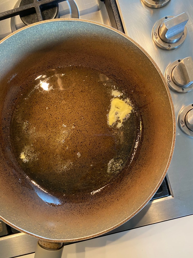 5.heat a pan/pot suits to cook the biriyani. Add 3tbs ghee and heat up.