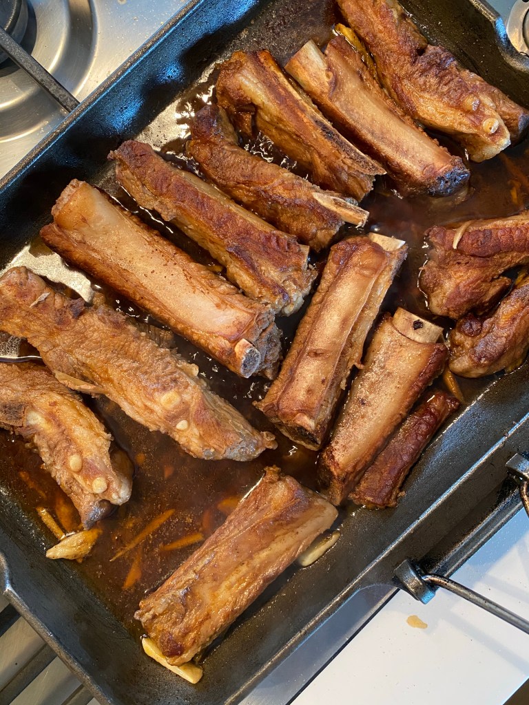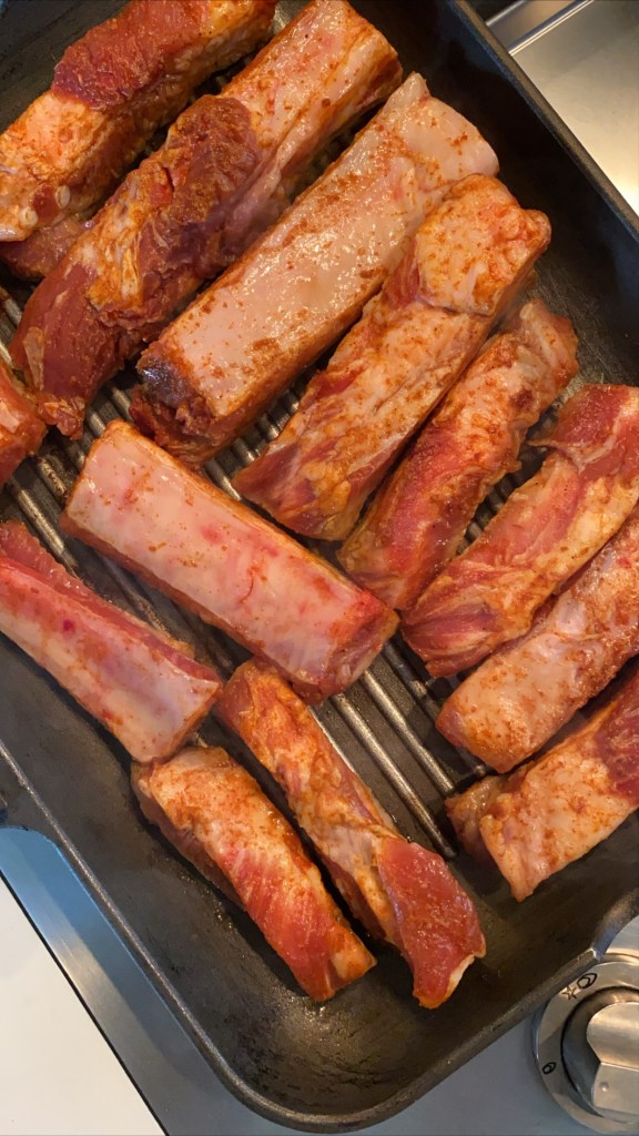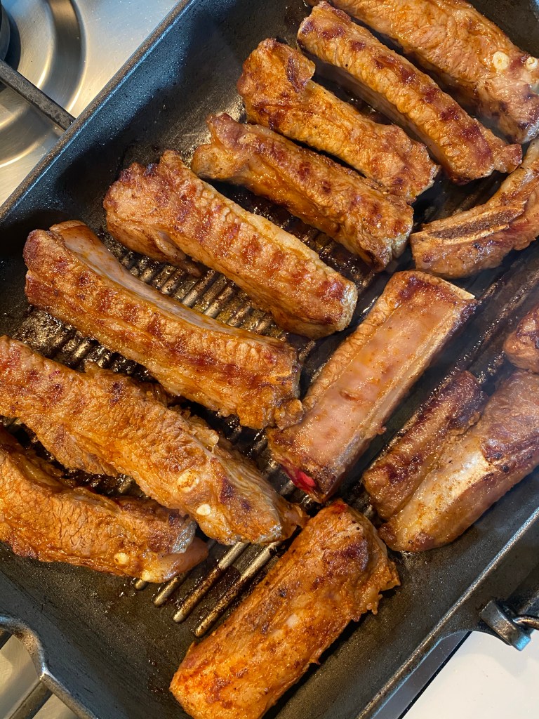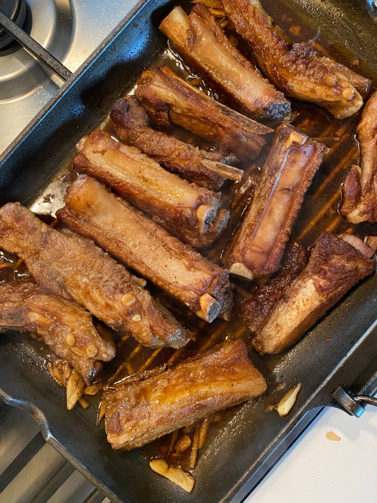 8.at the last minute drizzle 2tbs honey over the ribs and let them caramelise in high heat by turning upside down and Fire off.