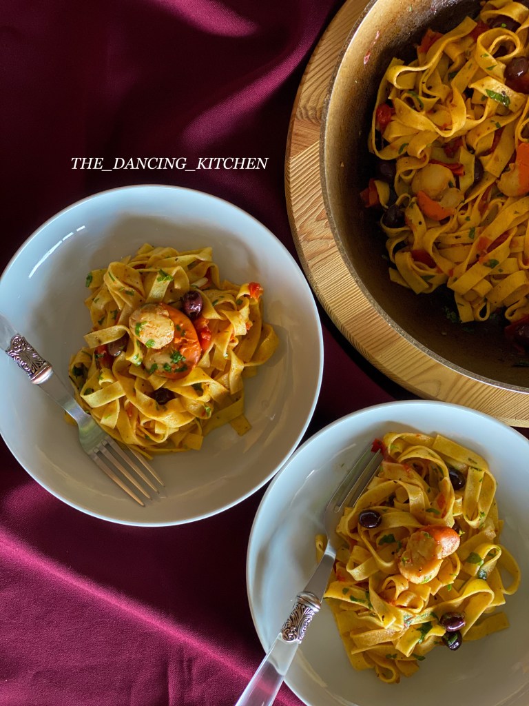 Few weeks ago just we two celebrated hubby’s birthday and cooked this scallops pasta for lunch. Cooked scallops for the very first time and was too good with this tomato sauce made from fresh tomatoes.