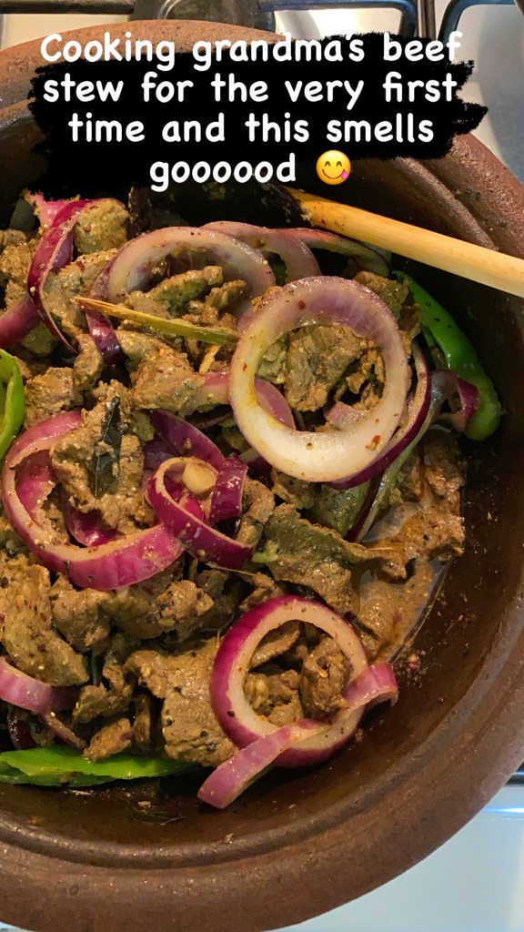 This is the very first time that I’m gonna share beef recipe on my blog. Never ever cooked before even. Most Sri Lankan’s don’t eat beef, because they think it as a sin. But I’m not belong that category. I had beef until I was around 7 or 8. Then one day when my grandma was cooking her famous beef stew and that smell makes me sick. Since that day I never had beef in my life. Even Amma doesn’t cooked beef much more in our kitchen. It’s because only Thaththa is the one who consume beef in our home. So back in days beef cooked in our home only when Thaththa was in SL. It’s also happened very rarely. So there wasn’t much place for beef in our home. Not even beef, other meats also. We grew up eating more seafood than meat. As everyone of our family was engaged in fishery industry. But the man I married is ready to eat any type of meat all the time. If there’s meet he is happy more than anything. He was asking me to cook beef in past weeks. I kept him waiting. Because my pregnancy mood isn’t good to cook it. And as how my sister was hosting a little birthday party for her husband, I thought to make my grandma’s beef stew for them. Then my man also having an accompany to enjoy his meal.