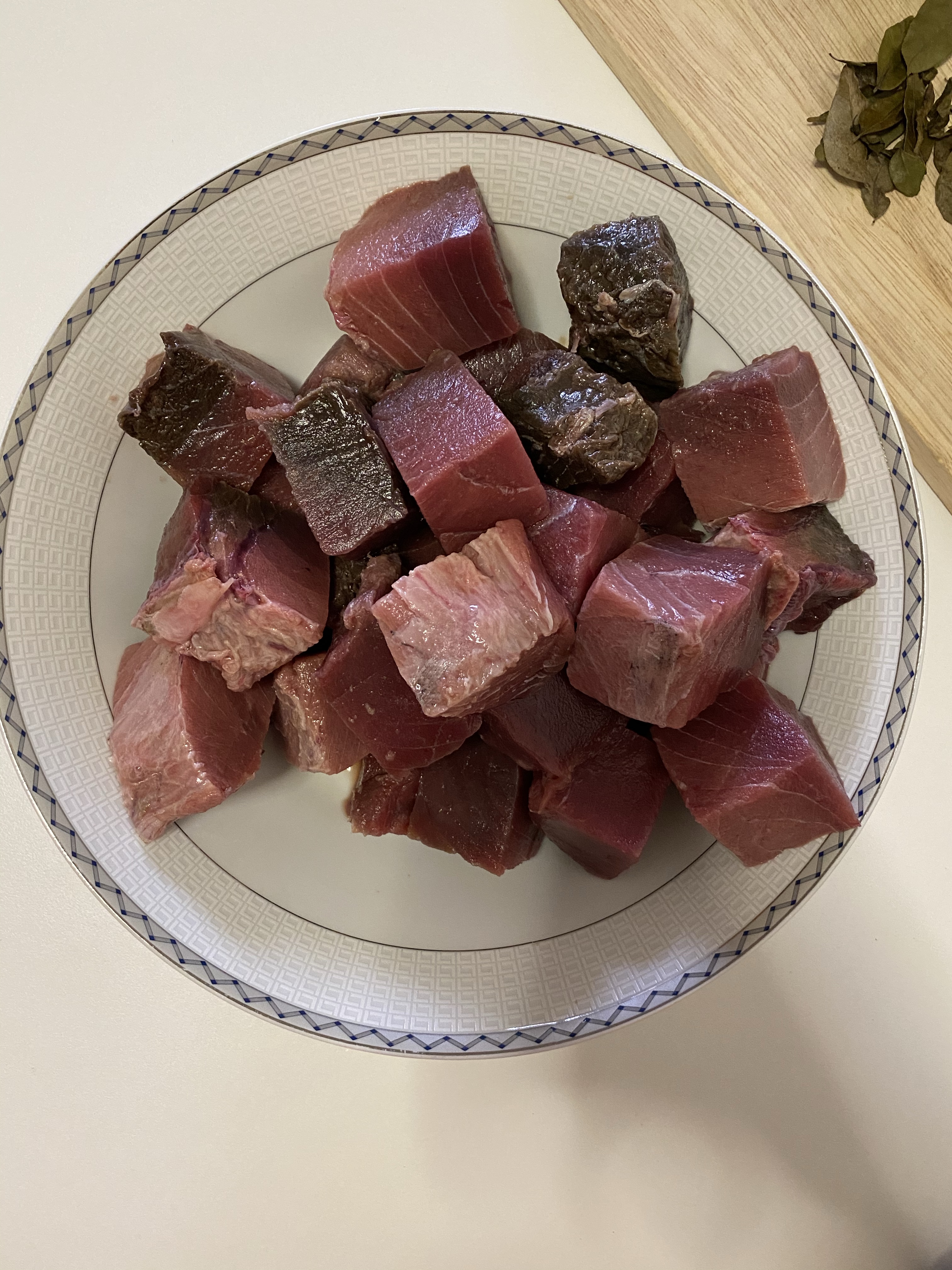 1.I got 1300g tuna fish chunks. Wash well and leave in a colander to leave the excess water.