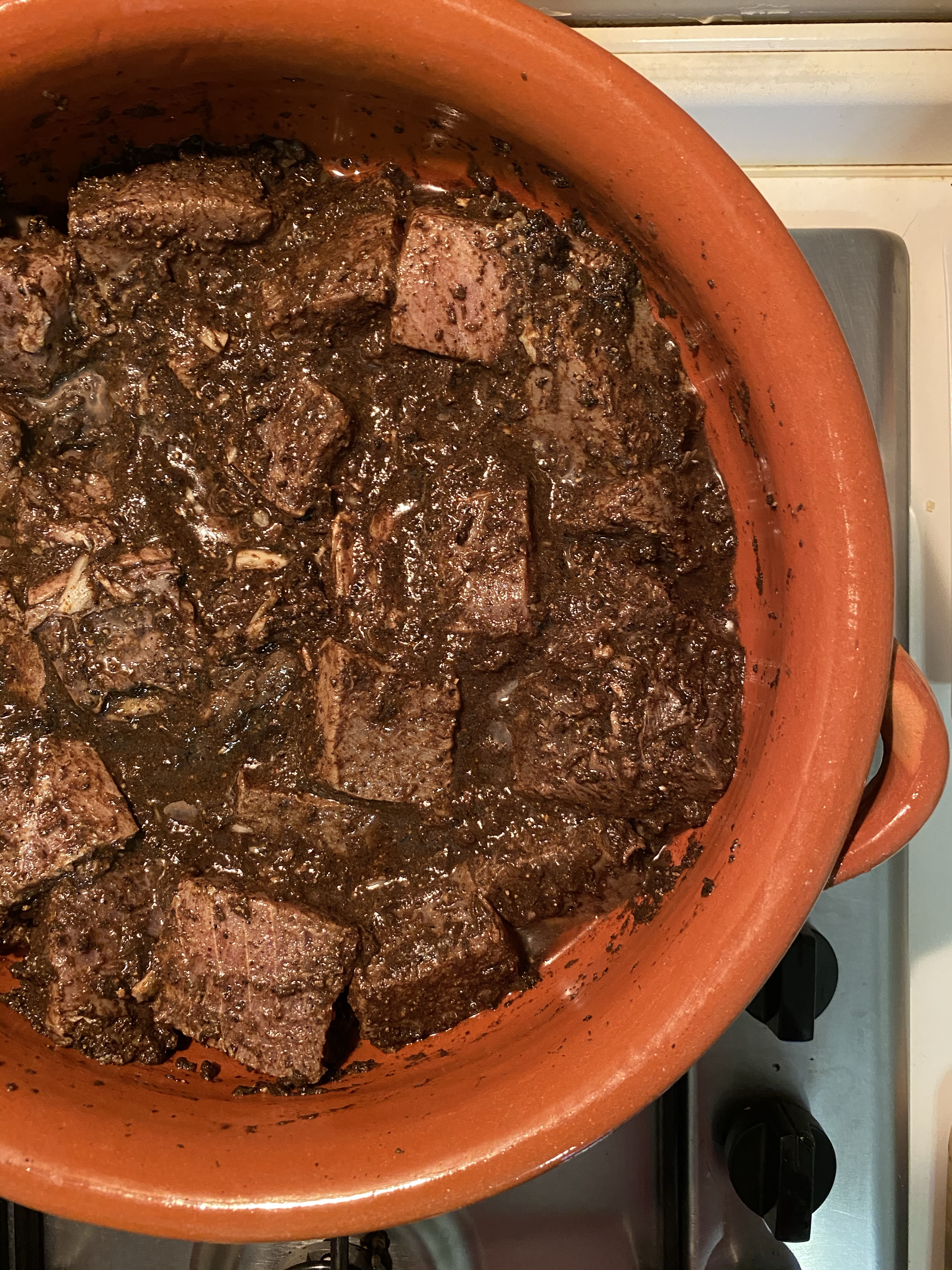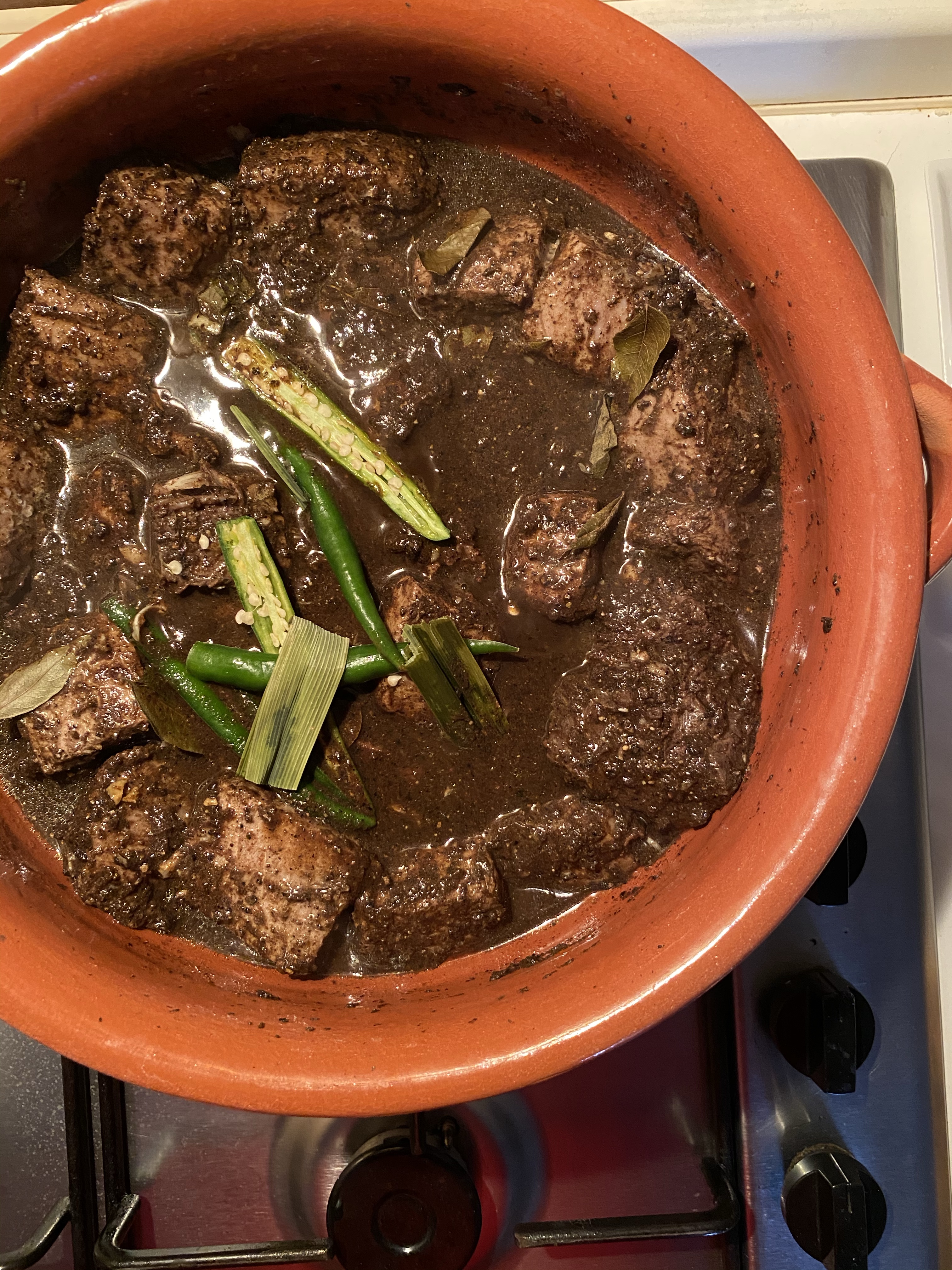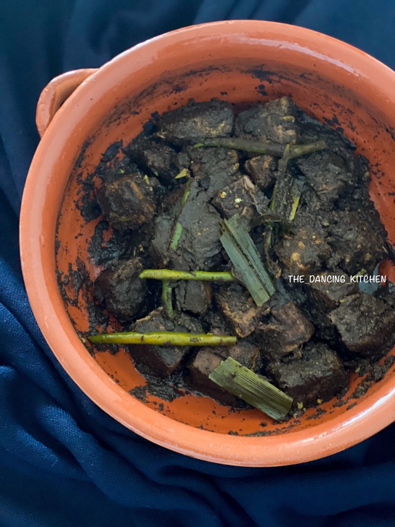 Generally this curry is cook in a clay pot by laying some banana leaf to prevent getting stick to the clay pot. Place all the spices coated fish chunks over the banana leaf and cook under low heat until gravy is simmer and thick. As gravy got simmer more, need to keep an eye on it, not to look dry. Because you are preserving the fish. Again and again you gotta re heat this. If it looks dry at the very first time, there wouldn’t be any gravy left for further more. Here I used traditional an Italian “terracotta pot” for my ambulthiyala. These pots normally use in Italian kitchens for slow cook like bolognese sauce. As how this pot got shinny non sticky look it helps to prevent getting sticky. And as how I cannot find banana leaves these days used this terracotta pot instead of clay pot but highly recommend you to use Sri Lankan clay pot with a banana leaf.