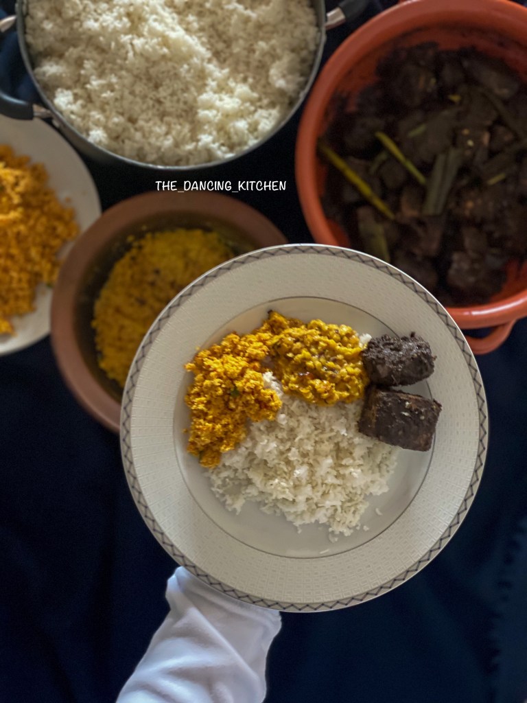 My father when he was a little boy, he got more other ten siblings and unfortunately four died when they were too young. And my paternal grandparents were poor enough to feed all other seven. One of the fishmonger who comes from Mirissa requested Thaththa for adopting. Since that day we gotta family in south coast of Sri Lanka. He always called Mirissa for his second home. There he found more other five siblings. We are so close with the eldest of that family, he is Thaththa’s forever “Lokka Aiya”. And his wife, Nanda (aunty) she was more closer than anyone of that family. We at least spent a week of our school vacation at their place. We used to eat rice for whole three meals. But only red rice no more white rice. When we are in our place we all three claim about eating rice for both lunch and dinner but whenever we were at Mirissa we never felt tired of eating rice 7/7. Dunno the reason but there we can eat more than we knew. Every morning Nanda used to serve us red rice, pol sambol, parippu and malu ambulthiyala and hot cup of nestamolt. I still can smell it from my memories. Now I’m pregnant with my first baby, I was craving for this menu and just did all by myself to treat my baby girl. While I was eating this, this reminds me old good days. Now I cannot have this childhood favorite combo because two years ago Nanda passed due to her cancer.