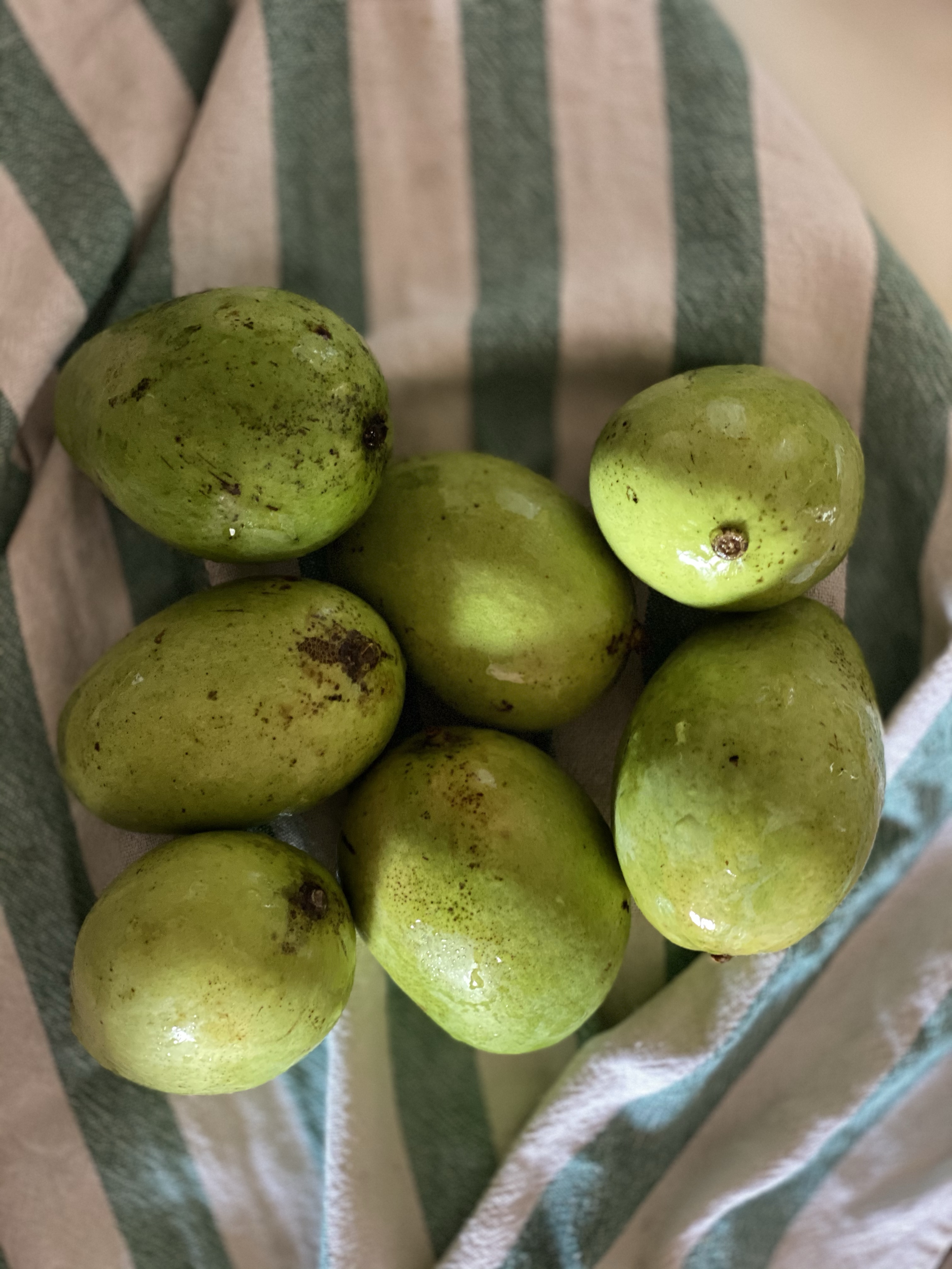 1.I got 7 raw mangoes it was around 990g. Cut the washed mangoes into slices with the skin on. You can use the seed or either remove it.