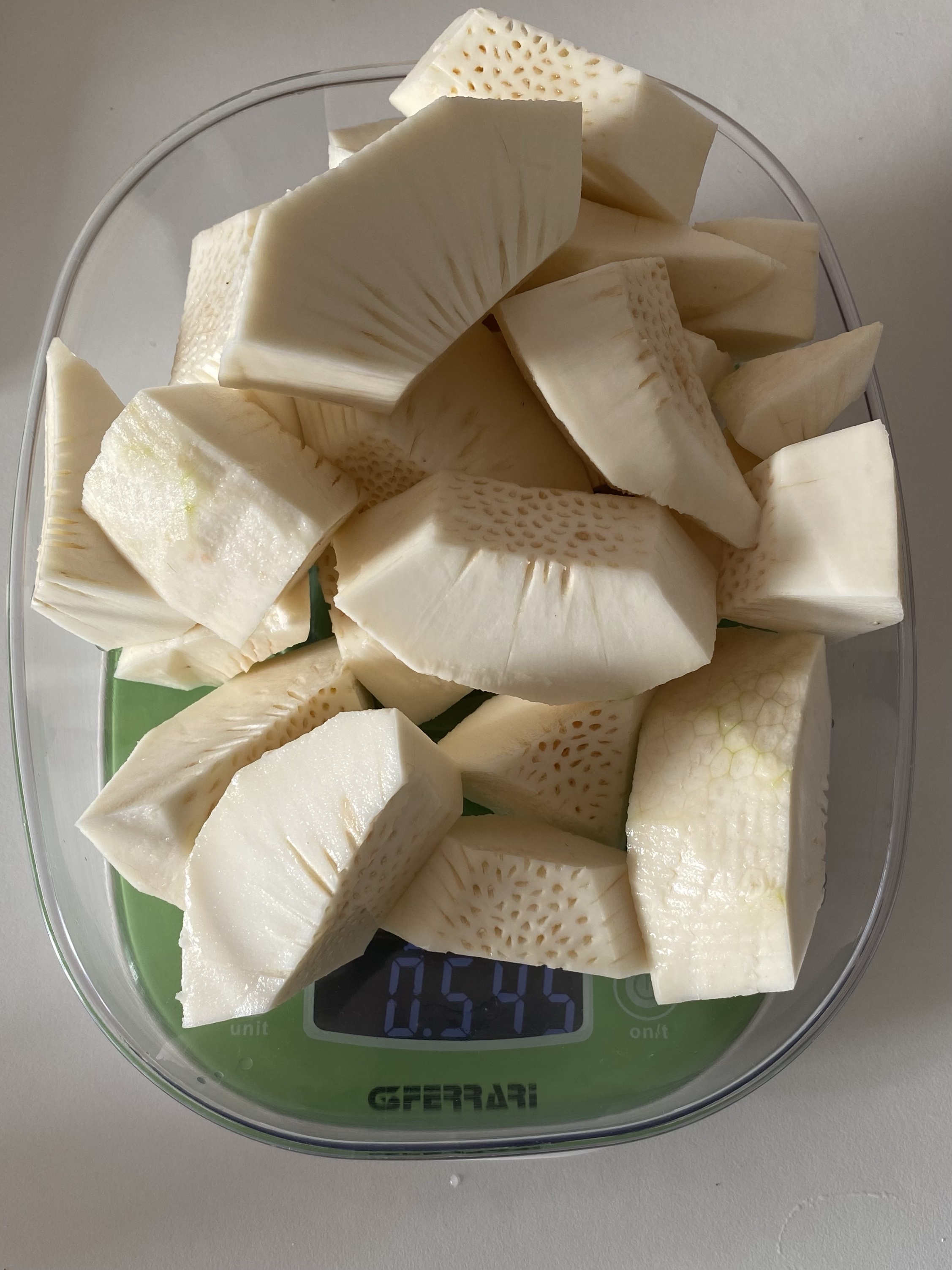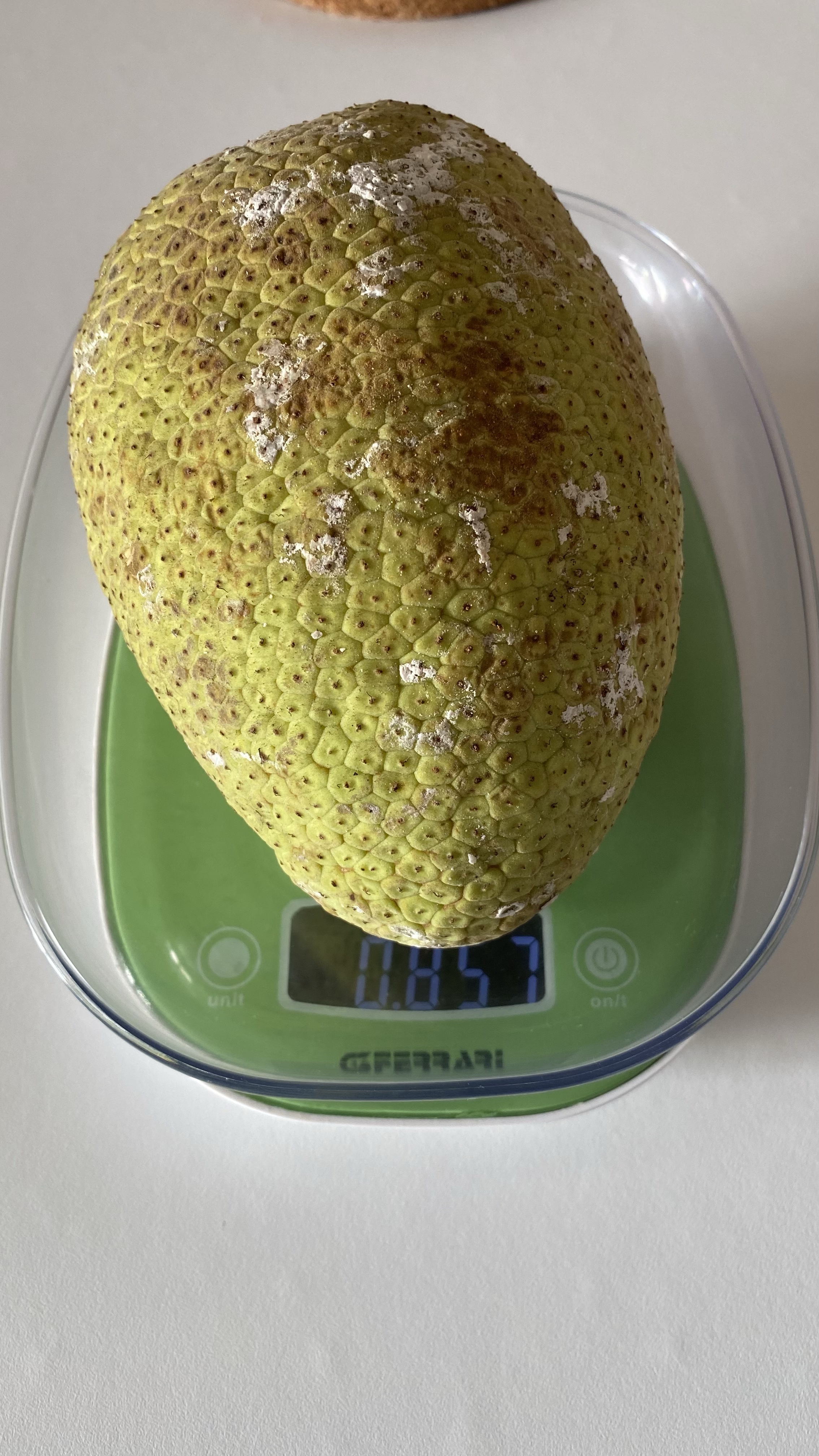 1.this was one small size breadfruit. The whole fruit was around 857g.