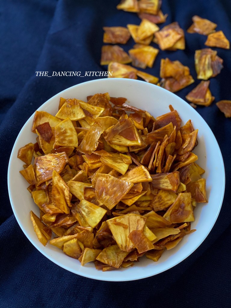 Here’s some deep fried breadfruit chips coated with caramelized treacle that my mother did for us…