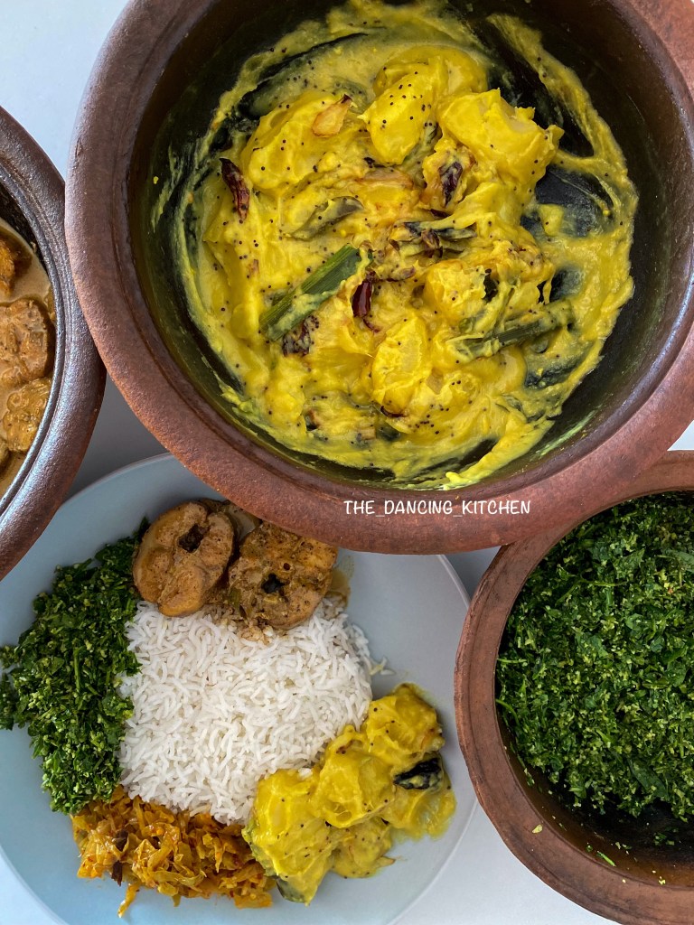 Breadfruit curry is one of the most popular and delicious curry in Sri Lanka. We used to eat this as curry, boiled breadfruit with some freshly scraped coconut, breadfruit mallum or deep fried breadfruit chips coated with caramelized sugar or treacle. I just love all these ways.